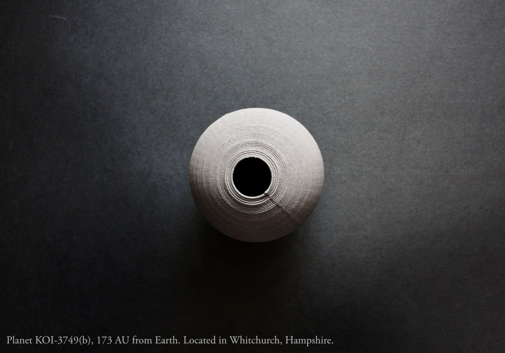 Each of these Kepler Planet Candidates was plotted onto a map of the UK and the sculptures made with soil from each location. Alongside a pair of books documenting the process.